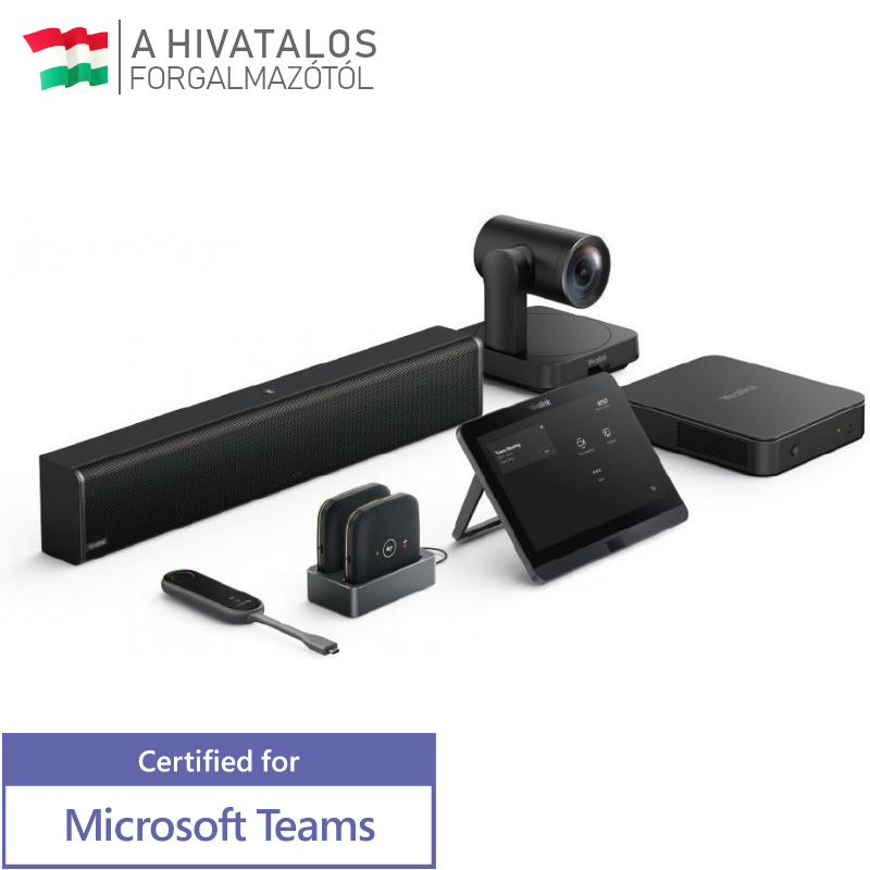 A Yealink MVC640-et a 4K felbontású, 12x optikai zoom-mal rendelkező UVC84 USB PTZ kamera, a harmadik generációs MINI-PC MCore Pro, az MTouch E2 érintőpanel és az MSpeaker II teszi kiváló választássá minden közepes nagyságú tárgyalóba.