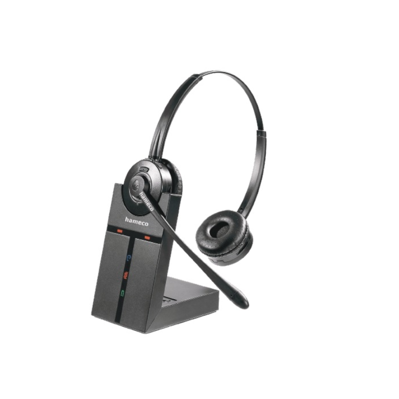 This headset was developed for use in an office or call center environment. While developing this headset, we had those who are constantly in motion in mind. With its help, you can talk on the move even while you are searching for a document or photocopying. It is suitable for telephones (HS-9000) and softphone applications (HS-9300). The product’s features include crystal clear audio, a noise-cancelling microphone and hearing protection. Using an optional cable, an EHS connection is possible (depending on the type of phone). The headset is comfortable and has an adjustable microphone boom arm and headband. It is made from durable material. A maximum of four headsets can be connected to the base unit, through which a conference call can be initiated. The state of the headset can be monitored by checking the LED lights. When connected to a landline phone, the microphone and speaker’s audio can be ad-justed to the optimal level.