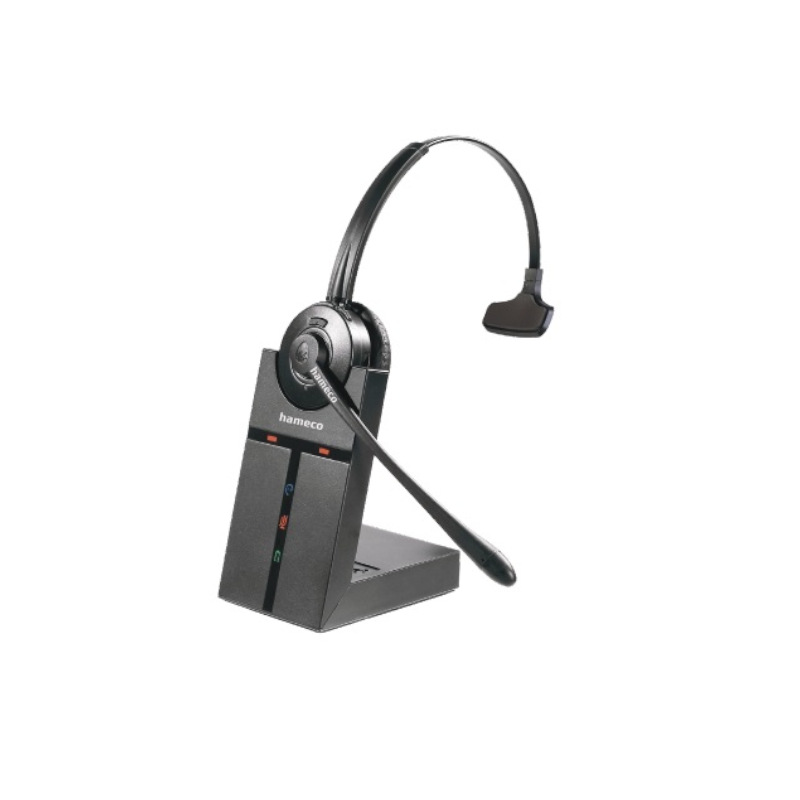 This headset was developed for use in an office or call center environment. While developing this headset, we had those who are constantly in motion in mind. With its help, you can talk on the move even while you are searching for a document or photocopying. It is suitable for telephones (HS-9000) and softphone applications (HS-9300). The product’s features include crystal clear audio, a noise-cancelling microphone and hearing protection. Using an optional cable, an EHS connection is possible (depending on the type of phone). The headset is comfortable and has an adjustable microphone boom arm and headband. It is made from durable material. A maximum of four headsets can be connected to the base unit, through which a conference call can be initiated. The state of the headset can be monitored by checking the LED lights. When connected to a landline phone, the microphone and speaker’s audio can be ad-justed to the optimal level.