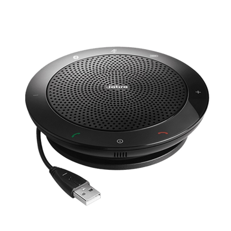 Increase productivity and stay focused wherever you are with Jabra Speak, a range of portable speakerphones that give you the power to literally turn any room into a conference room. Regardless of your location and your timeline, you can now join the conversation anytime, anywhere. With slim and compact design you can get the perfect solution for audio conferencing on demand. Use the integrated USB cable management for quick set-up. The speakerphone has a protective travel case. Plug your USB cable or connect via Bluetooth, and simply connect Jabra Speak to your PC, tablet or smartphone. Than you are ready to dial in. With Jabra Speak you get crystal-clear and natural sounding calls that allow attendees to hear and speak clearly across any location. Choose Jabra Speak 510 enhanced with Bluetooth to connect to any mobile device and get the freedom to communicate on your terms with benefits from full compatibility – including call control - or with the leading UC/Softphone solutions and any Bluetooth enabled cell phone, smartphone or tablet. Furthermore the speakerphone is compatible with Microsoft Skype for Business/Lync.
