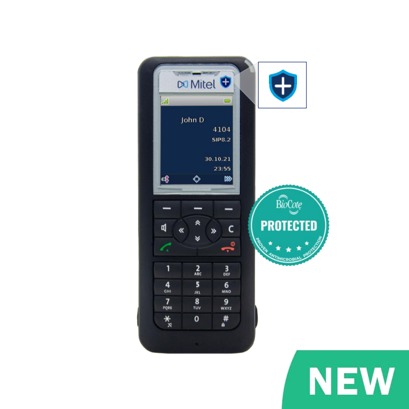 The handset satisfies industrial standard IP 65 and with its high level of dust protection and jet- water resistance it can be used anywhere outdoors or in production areas. Equipped with a Bluetooth® interface for a cordless headset, Mitel 632dt allow maximum freedom of movement. The high-quality lithium-ion battery can be charged via the USB interface, independently of the charging bay. Additionally, its integrated sensor alarm can be used in lone worker environments as a safety measureAntimicrobial Testing