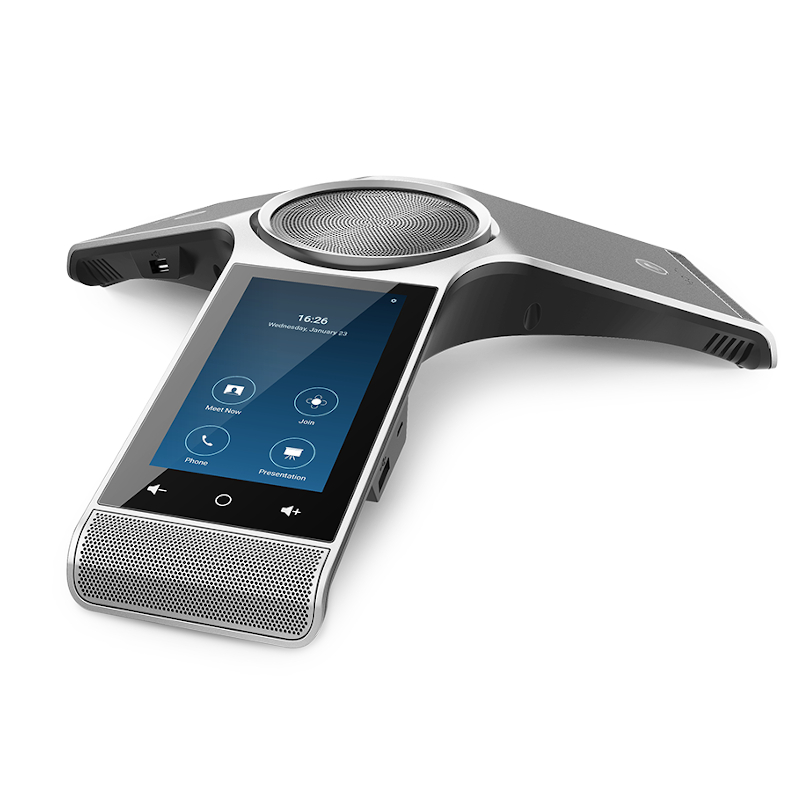 Yealink ZVC300 Zoom Rooms Kit includes an UVC30-Room 4K USB camera with auto-framing feature and a CP960 uniting microphones, speaker and meeting console all in one, which makes it perfectly suitable for huddle and small meeting room.