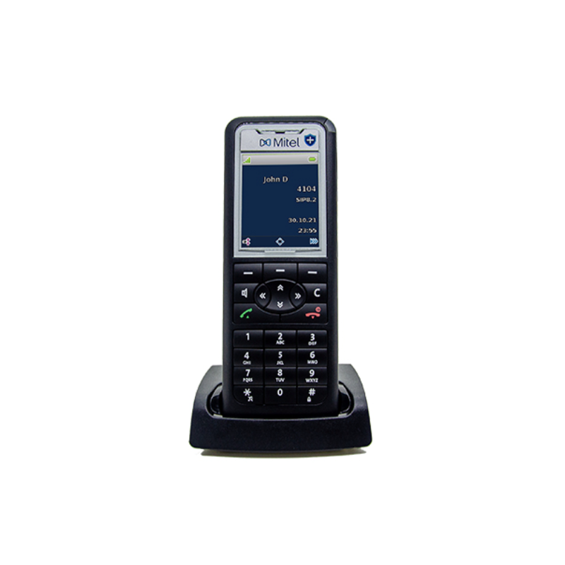 The Mitel (former Aastra) 612 of the Mitel 600 DECT telephone family is the basic model for the business sector. With its colour 2" TFT display it guarantees an optimum overview and simple operation of the clearly structured menus at all times. It also supports service facilities like firmware download over air* which helps to reduce support costs.*