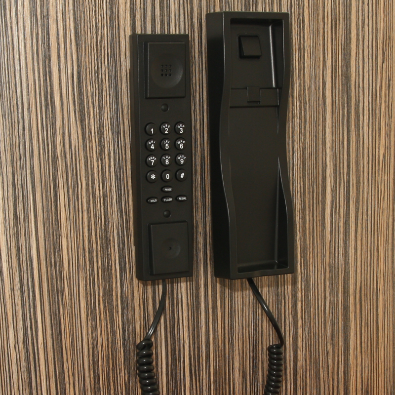 Nordic Trimline is a single line analog phone with redial and flash keys. Its high quality black matte / glossy silver plastic casing provides a stylish telephone for many areas in your hotel.