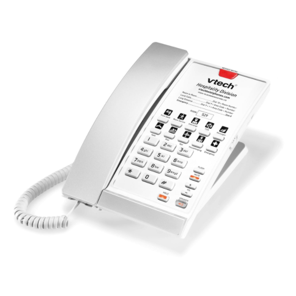 A modern addition to any guest room, this one-line analog phone features corded comfort, elegant styling and antibacterial plastic. Since it's line-powered, your guests can always stay connected—even during power failures.