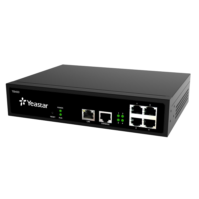 Yeastar TB400 is a compact and reliable standalone VoIP ISDN2 (BRI) gateway (BRI-VoIP/VoIP-BRI) offering 4 BRI ports for companies using ISDN BRI lines an easy, cost-effective and flexible integration into any VoIP system or enabling any IP PBX to be connected to the public ISDN network.