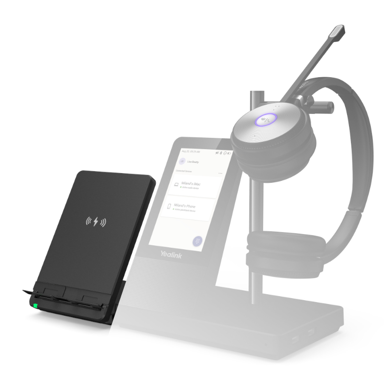 A WHC60 vezeték nélküli töltővel gyorsan és könnyedén feltöltheti mobiltelefonját, és egyszerűen csatlakoztathatja a Yealink WH66 és WH67 vezeték nélküli DECT fejbeszélőkhöz.